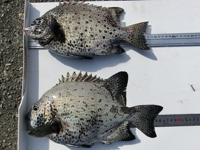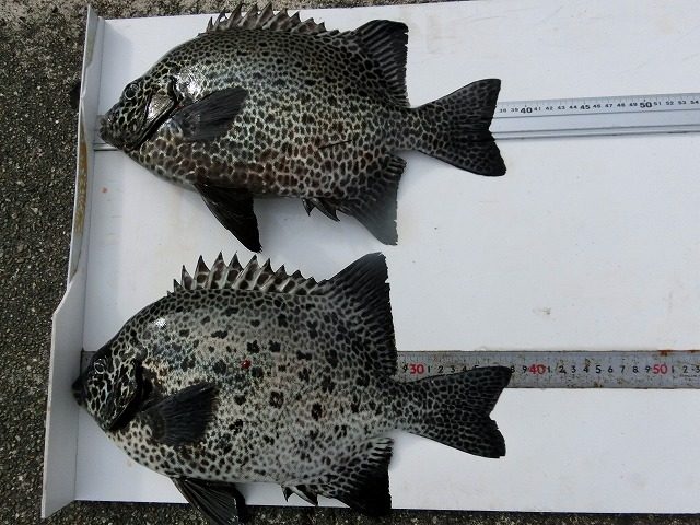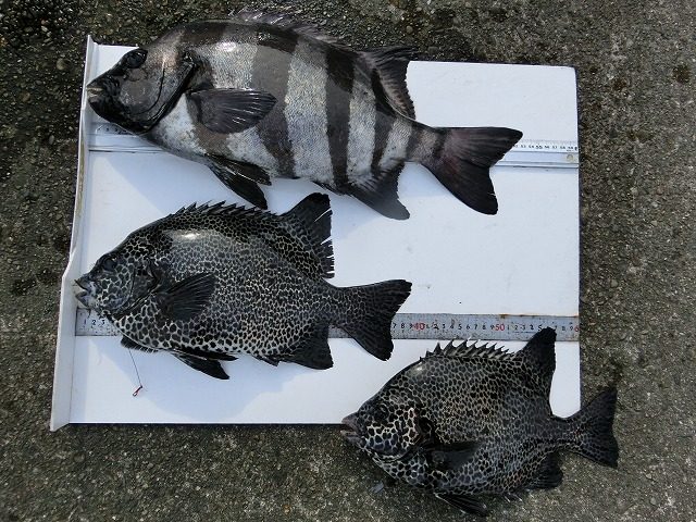 【釣り人】八尾市 原山輝二さん【釣 果】イシガキ 35cm~40.5cm 3匹 【釣り方】底物釣り【水 温】22.2度 【海 上】多少波 【 潮 】上り・速い -