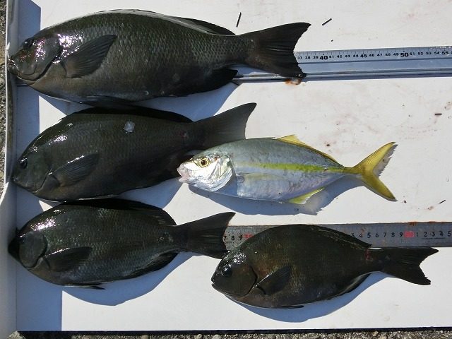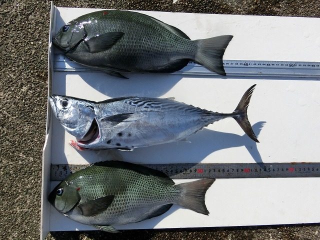【釣り人】寝屋川市 嶋津靖久さん【釣 果】ぐれ 33.5cm~37.5cm 2匹 ヤイトガツオ 41cm 1匹 【釣り方】フカセ釣り【水 温】21.9度 【海 上】ナギ 【潮 】下り・遅い 【釣り人】奈良市 柳 康政さん【釣 果】... -