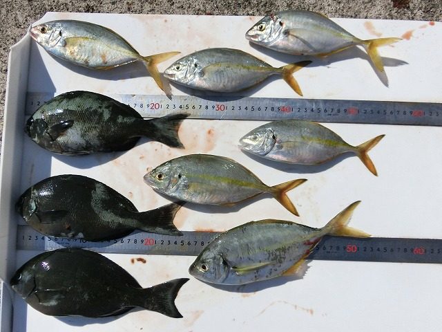 【釣り人】神戸市 高橋保洋さん【釣 果】尾長 25cm~26cm 3匹 シマアジ 6匹 【釣り方】フカセ釣り【水 温】25.8度 【海 上】多少波 【 潮 】上り・遅い 【釣り人】南牟婁郡 阪口記生さん【釣 果】... -