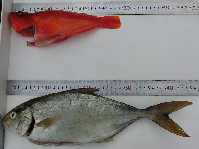【釣り人】稲沢市 木本 快さん【釣 果】ヒレナガカンパチ 44cm 1匹 アカハタ 28.2cm 1匹 【釣り方】ルアー釣り【水 温】25.8度 【海 上】多少波 【 潮 】上り・速い 【釣り人】御所市 阪本雅宜さん... -