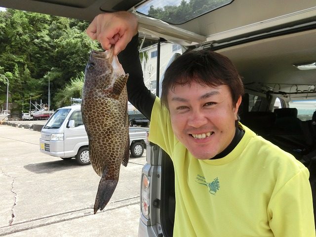 【釣り人】名古屋市 滝本智浩さん 【釣 果】イシガキ 33.5cm 1匹【釣り方】底物釣り 【水 温】26.0~27.1度 【海 上】多少波 【 潮 】上り・速い -