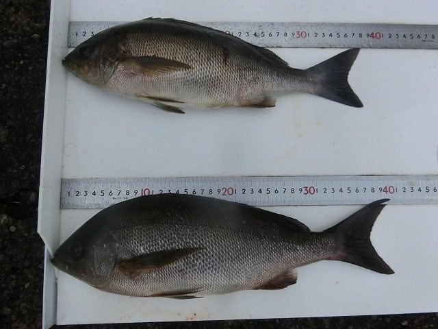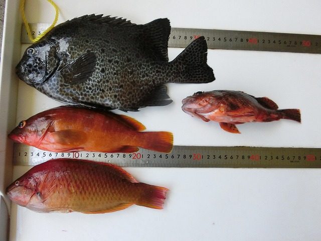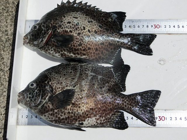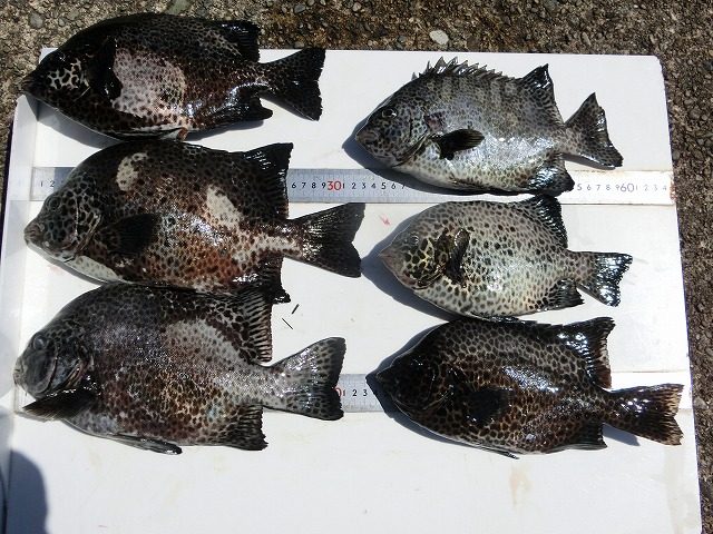 【釣り人】枚方市 岡南次郎さん【釣 果】イシガキ 30cm 2匹 【釣り方】底物釣り【水 温】24.5~26.0度 【海 上】高波 【 潮 】上り・遅い 【釣り人】名古屋市 滝本智浩さん 初めての底物釣りでした。【釣 果】イシガキ... -