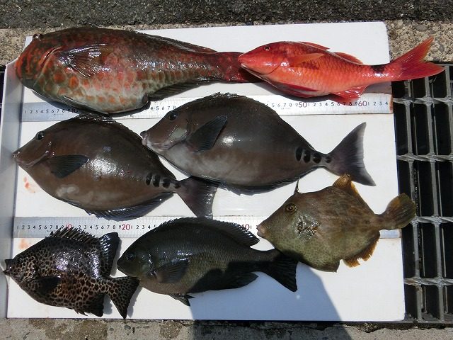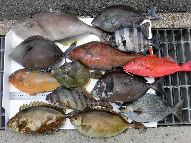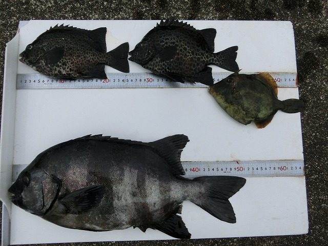 【釣り人】岐阜市 木村正幸さん【釣 果】アイゴ 33.5cm~35cm 2匹 ウスバハギ 50cm 1匹 オジサン 34.5cm 1匹 サンノジ 32cm~34cm 3匹 イガミ 36.5cm 1匹 カワハギ... -