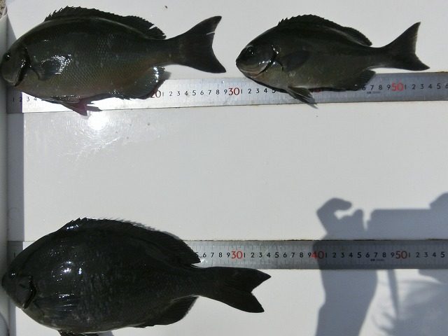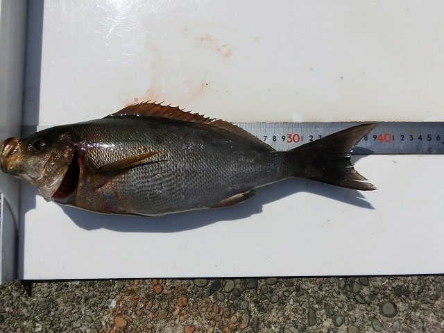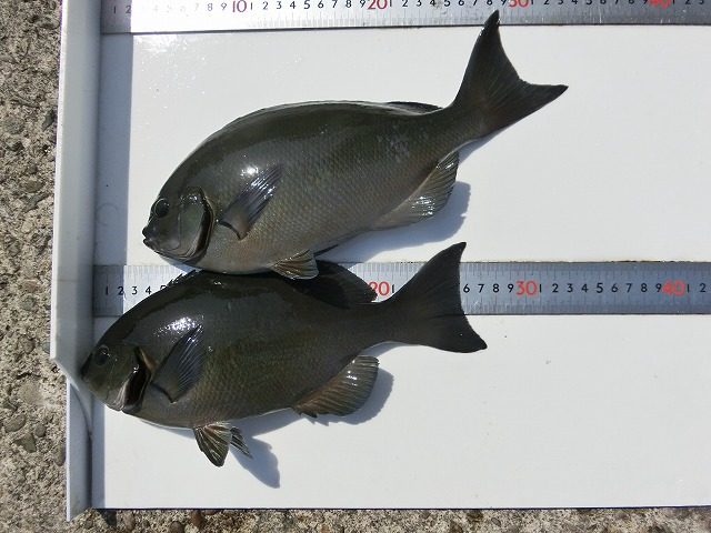 【釣り人】大阪市 大城秀雄さん 【釣 果】尾長 27cm~31cm 2匹 【釣り方】フカセ釣り【水 温】17.8度 【海 上】多少波 【 潮 】上り・遅い -