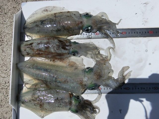 【釣り人】大阪市 小松明夫さん【釣 果】アオリイカ 4ハイ 【釣り方】ヤエン釣り【水 温】17.5度 【海 上】多少波 【 潮 】上り・遅い -