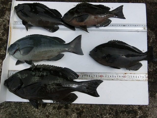 【釣り人】大阪市 松井敏之さん【釣 果】ぐれ 29cm~41cm 5匹 【釣り方】フカセ釣り【水 温】17.8度 【海 上】高波 【 潮 】上り・遅い -