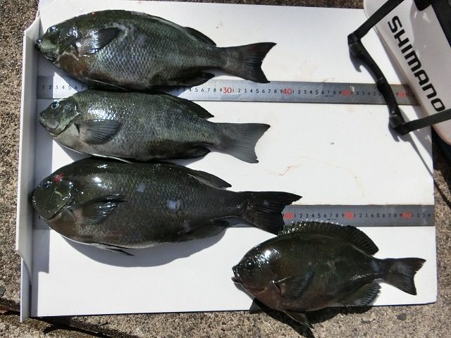 【釣り人】磯城郡 宮本 翼さん 【釣 果】ぐれ 29cm~35cm 2匹 尾長 26cm 1匹 【釣り方】フカセ釣り【水 温】17.5~17.8度 【海 上】ナギ 【 潮 】上り・遅い 【釣り人】大阪市 大城秀雄さん... -