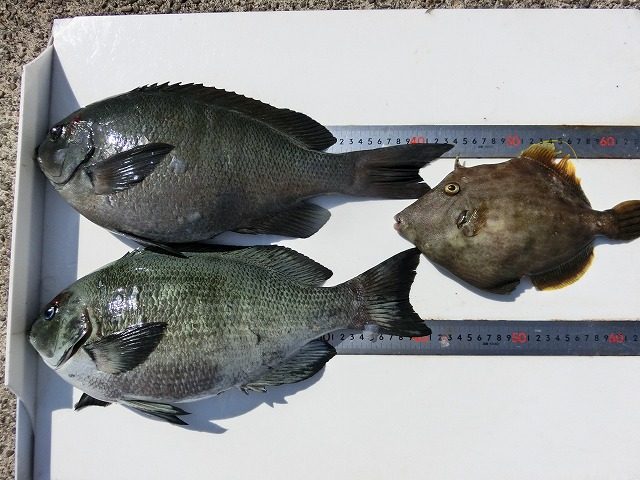【釣り人】宇陀市 勝山常雄さん【釣 果】ぐれ 42cm~44cm 2匹 カワハギ 28cm 1匹 【釣り方】フカセ釣り【水 温】17.5度 【海 上】高波 【 潮 】上り・速い 【釣り人】東大阪市 片平直幸さん【釣 果... -