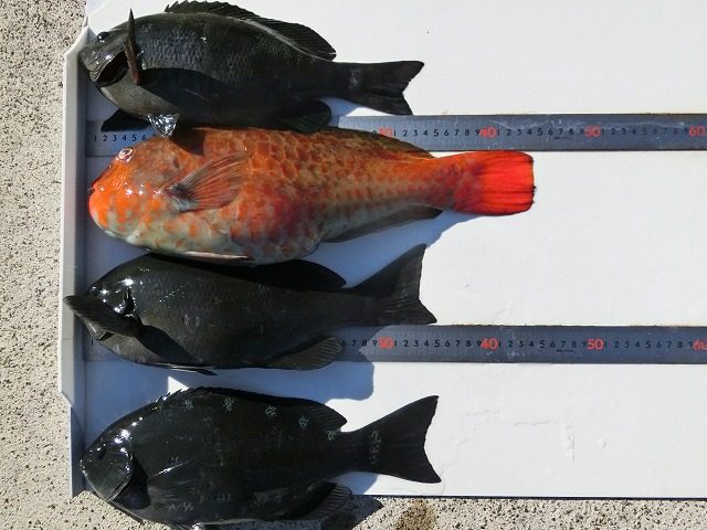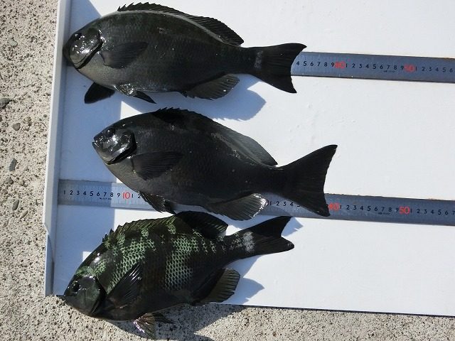 強風の中、頑張ってくれました。 【釣り人】堺市 和田康孝さん【釣 果】ぐれ 34.5cm~36cm 3匹 イガミ 44cm 1匹【釣り方】フカセ釣り 【水 温】17.9度 【海 上】ナギ・西の風強風 【 潮 】下り・速い ... -