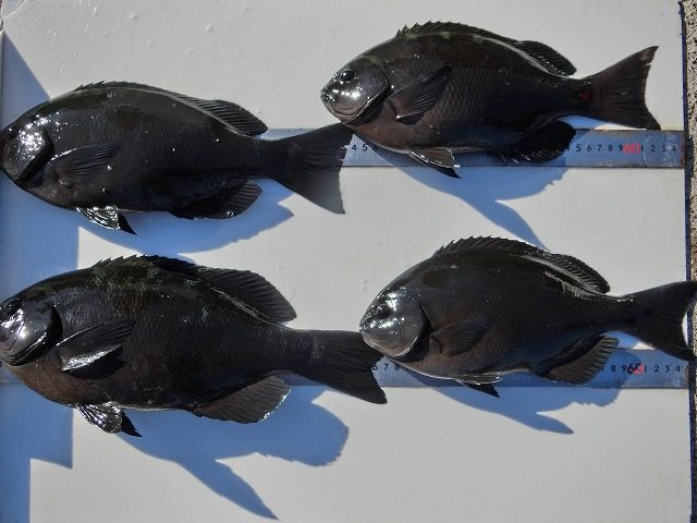 【釣り人】神戸市 高橋保洋さん【釣 果】ぐれ 33cm~39.5cm 4匹 【釣り方】フカセ釣り【水 温】17.9度 【海 上】ナギ 【 潮 】下り・遅い -