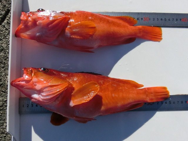 【釣り人】田辺市 西川智教さん【釣 果】アカハタ 34cm~35cm 2匹 【釣り方】ルアー釣り【水 温】21.7度 【海 上】ナギ・強風 【 潮 】上り・速い -