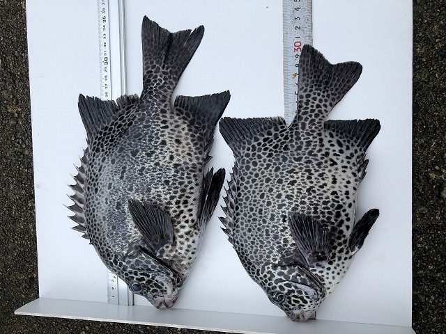 【釣り人】南牟婁郡 阪口記生さん 【釣 果】イシガキ 30cm~35.5cm 2匹 【釣り方】底物釣り 【水 温】24.5度 【海 上】多少波 【 潮 】上り・下り・遅い -