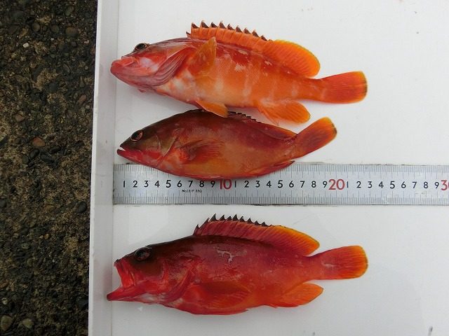 【釣り人】堺市 塩田 誠さん 【釣 果】アカハタ 30cm~33cm 3匹 アカハタ、25cmまで50匹以上釣りましたが、全部リリースしてきました。 【釣り方】ルアー釣り 【水 温】21.0度 【海 上】ナギ 【 潮 】上り・速い... -
