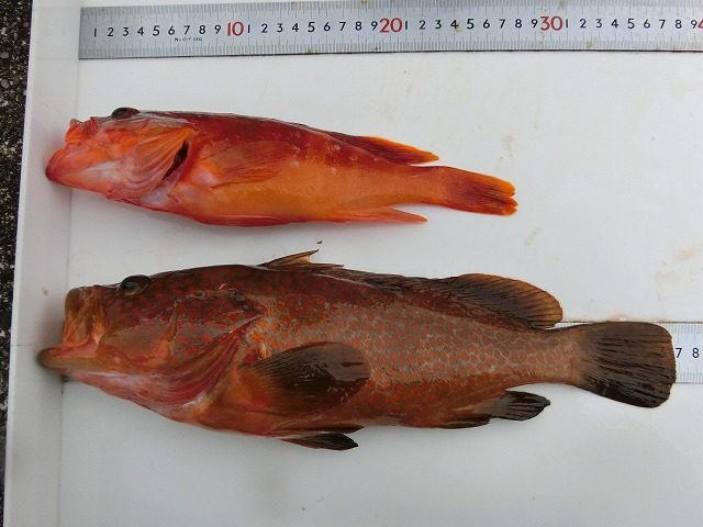 【釣り人】草津市 荒銭浩太郎さん 【釣 果】アカハタ 28cm 1匹 キジハタ 36.8cm 1匹 【釣り方】ルアー釣り 【水 温】17.5度 【海 上】多少波 【 潮 】下り・遅い 【釣り人】大阪市 中廣敬之さん ... -