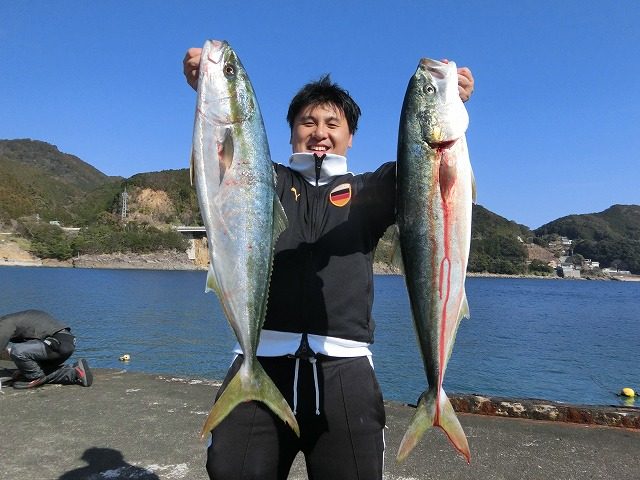 【釣り人】津市 箕澤啓太さん 初めて、ワラサを釣りました。 【釣 果】ワラサ 71.8cm~73.8cm 2匹 【釣り方】ルアー釣り 【水 温】17.5度 【海 上】ナギ 【 潮 】下り・速い 【釣り人】大阪市 小松明... -