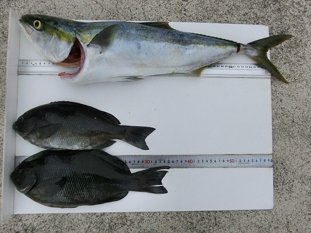 連日、ハマチ・ワラサのナブラがあります。 【釣り人】高槻市 大塚順平さん 【釣 果】イサキ 36cm~36.7cm 2匹 【釣り方】フカセ釣り 【水 温】19.7度 【海 上】ナギ 【 潮 】下り・速い 【釣り人】大阪市... -