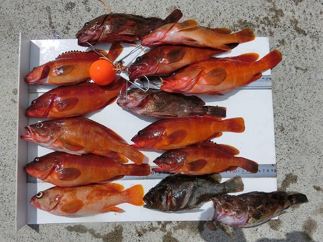 【釣り人】津市 前田 隼さん、吉田輝生さんら、2人で。 【釣 果】アカハタ 25.5cm~32.5cm 10匹 ガシ 25cm~28cm 3匹 ソイ 24.5cm 1匹 【釣り方】ルアー釣り 【水 温】22.5... -
