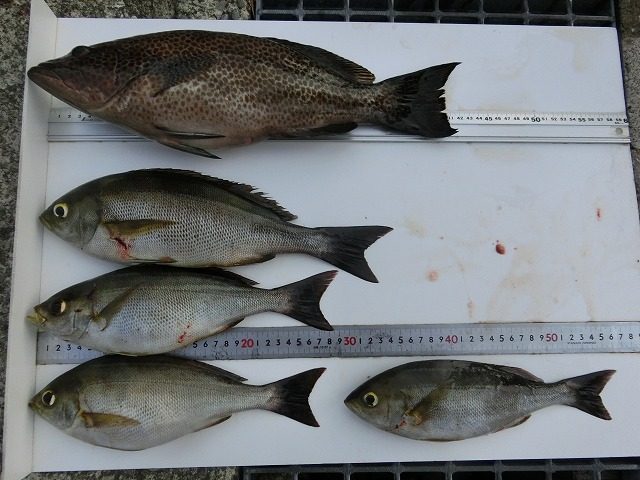 【釣り人】名古屋市 秋葉 浩さん 【釣 果】アカハタ 26cm~36.5cm 3匹 ガシ 1匹 【釣り方】ルアー釣り 【水 温】22.5度 【海 上】高波 【 潮 】下り・速い 【釣り人】大阪市 ... -