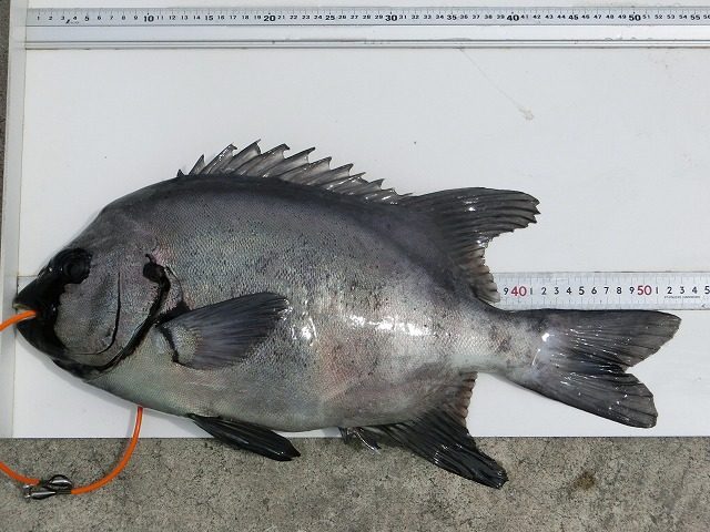 【釣り人】京都市 藤田 貢さん 【釣 果】イシガキ 36.5cm 1匹 【釣り方】底物釣り 【水 温】21.7度 【海 上】ナギ 【 潮 】上り・速い -
