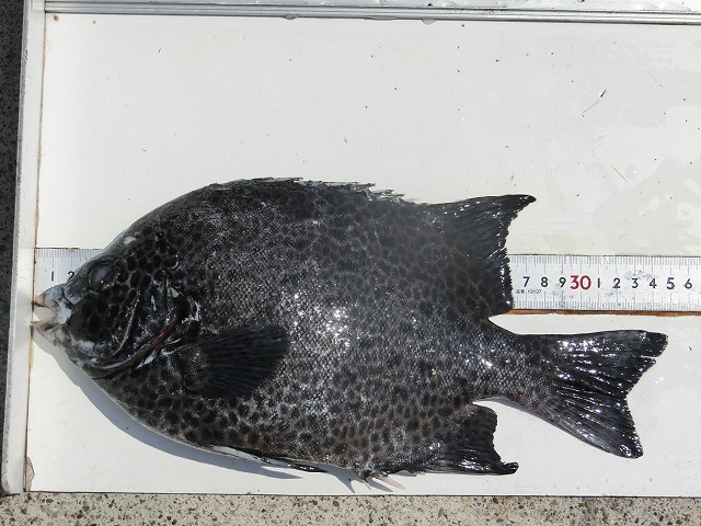 【釣り人】大阪市 南 信太郎さん 【釣 果】イシガキ 24.5cm~34.5cm 6匹 サンバソ 27cm 1匹 【釣り方】底物釣り 【水 温】度 【海 上】多少波 【 潮 】下り~上り・速い 【釣り人】磯城郡...