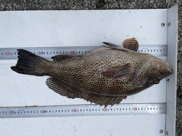 【釣り人】堺市 橋埜雅晴さん【釣 果】イシガキ 26cm~31cm 2匹 オオモンハタ 36cm 1匹 【釣り方】底物釣り【水 温】20.9度 【海 上】多少波 【 潮 】上り・速い -