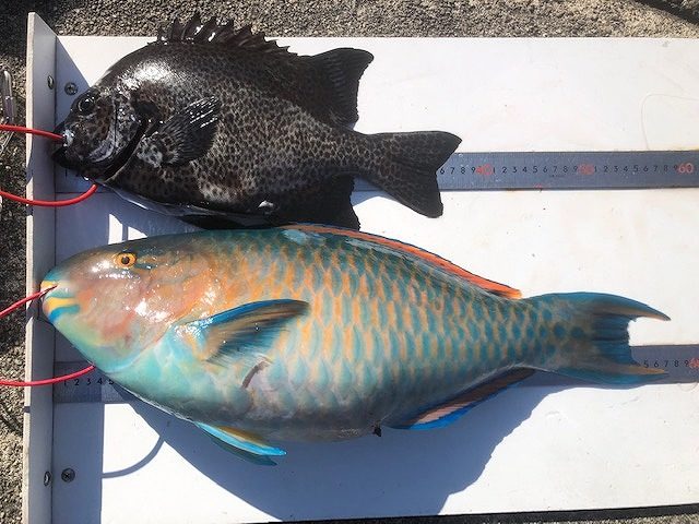 【釣り人】甲賀市 さやっぺー【釣 果】イシガキ 38cm 1匹 ヒブダイ 58cm 1匹 【釣り方】底物釣り【水 温】23.2度 【海 上】ナギ 【 潮 】下り・遅い 【釣り人】多気郡 笠原伸一さん【釣 果】尾長 28... -