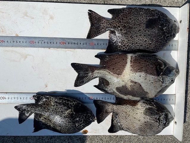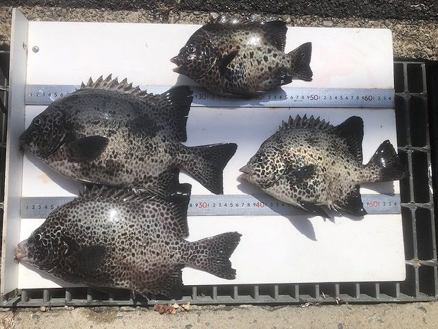 【釣り人】東大阪市 田中良明さん 【釣 果】イシガキ 29cm~37.5cm 4匹【釣り方】底物釣り【水 温】25.8度 【海 上】多少波 【 潮 】下り・速い -