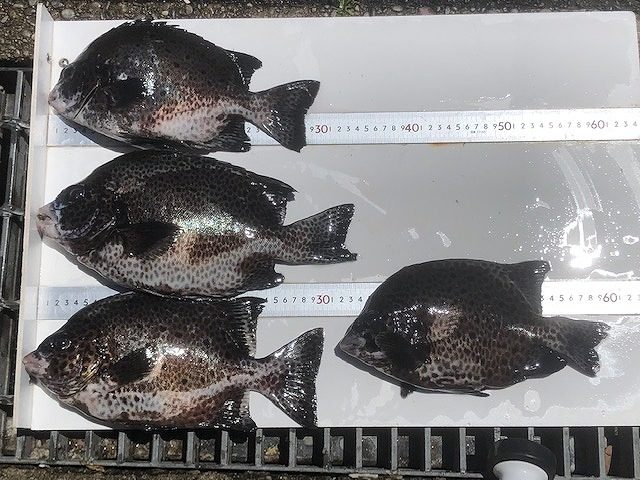 【釣り人】和泉の山ちゃん【釣 果】イシガキ 28.5cm~34cm 5匹 イシガキ 5匹の内 1匹は、磯の上で遊んでいたら海に帰りました。 【釣り方】底物釣り【水 温】22.3度 【海 上】ナギ 【 潮 】上り・速い  ... -