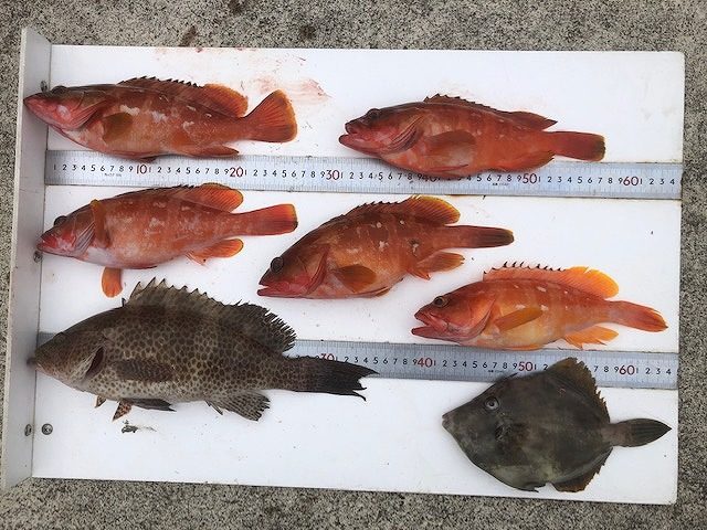 【釣り人】田辺市 西川智教さん【釣 果】アカハタ 25cm~26.5cm 5匹 オオモンハタ 35.5cm 1匹 カワハギ 1匹【釣り方】ルアー釣り【水 温】23.0度 【海 上】ナギ 【 潮 】下り・速... -