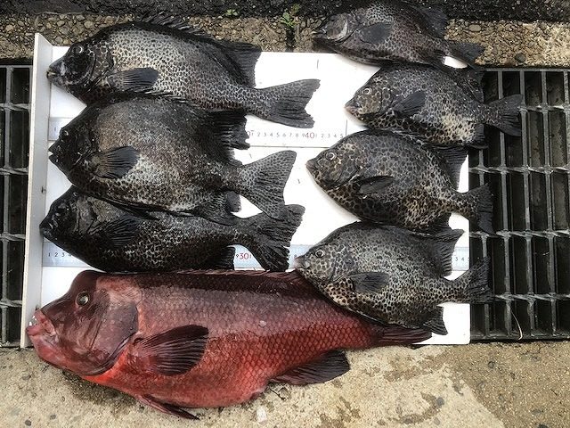 シイラ、掛けますがバラシが多かった。 【釣り人】八尾市 原山輝二さん【釣 果】イシガキ 29cm~41.5cm 7匹 コブダイ 59.5cm 1匹 【釣り方】底物釣り【水 温】22.5度 【海 上】ナギ 【 ... -