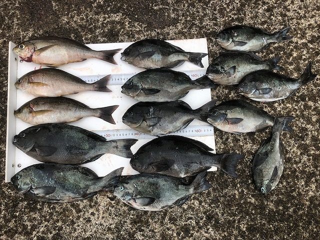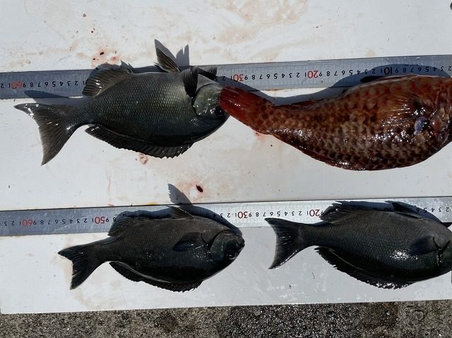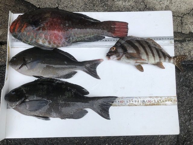 【釣り人】奈良市 橋本幸男さん 【釣 果】ぐれ 39cm 1匹 尾長 35cm 1匹 イガミ 43cm 1匹 タカノハ 1匹【釣り方】フカセ釣り【水 温】18.8度 【海 上】高波 【 潮 】下... -