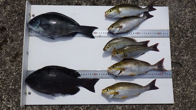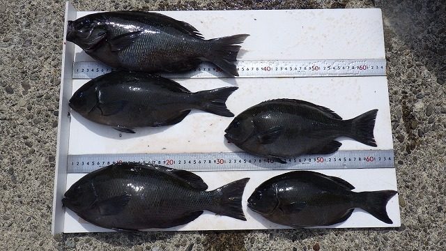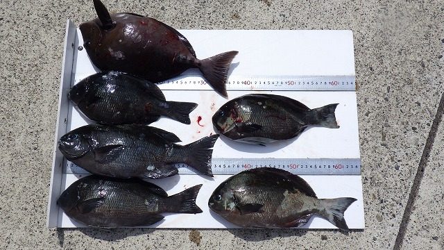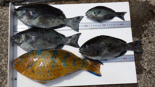 【釣り人】枚方市 岡南次郎さん【釣 果】ぐれ 36cm~39cm 3匹 ヒブダイ 48.5cm 1匹 【釣り方】フカセ釣り【水 温】19.6度 【海 上】高波 【 潮 】下り・速い 【釣り人】宇陀市 勝山常雄さん【釣 果】ぐれ 39... -