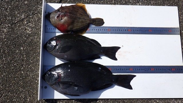 強風の中、懸命に頑張ってくれました。 【釣り人】高槻市 西里政良さん【釣 果】ぐれ 36cm~42.5cm 2匹 カワハギ 28cm 1匹【釣り方】フカセ釣り【水 温】15.8度 【海 上】ナギ ・ 風、強風 【 潮 】下... -