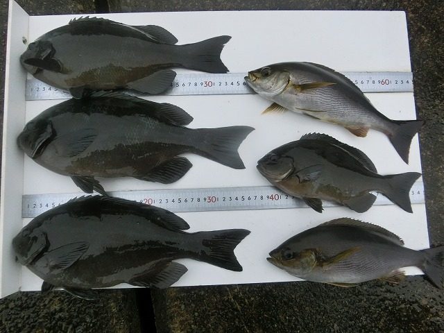 雨の中、頑張ってくれました。 【釣り人】和泉市 井上明也さん【釣 果】ぐれ 34.5cm~35.5cm 2匹 尾長 28cm 1匹 イサキ 32cm 2匹【釣り方】フカセ釣り 【水 温】17.9度 【海 上】多... -