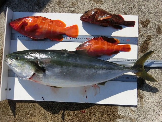 【釣り人】桜井市 中山節秋さん 【釣 果】ワラサ 74cm 1匹 アカハタ 28cm~35cm 2匹 ガシ 28.7cm 1匹 【釣り方】フカセ釣り 【水 温】18.0度 【海 上】高波 【 潮 】下り... -