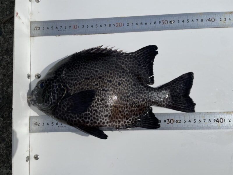 【釣り人】東大阪市 田中良明さん 【釣 果】イシガキ 40.5cm 1匹【釣り方】底物釣り【水 温】25.7度 【海 上】多少波 【 潮 】下り・遅い 【釣り人】河内長野市 金子さん【釣 果】イサキ 31cm~38.2cm 3匹【釣り方】フカセ釣り -