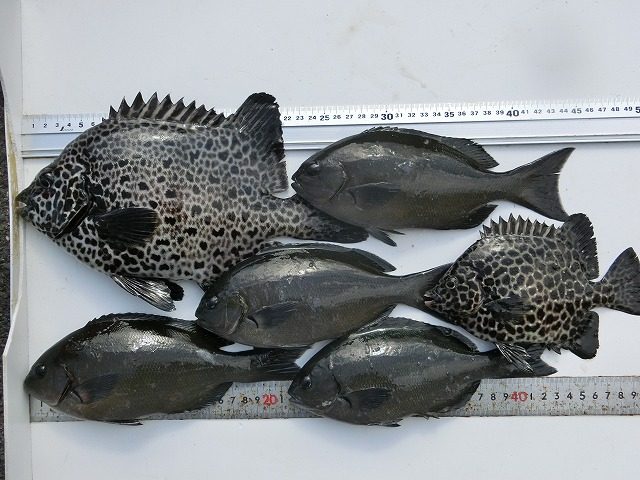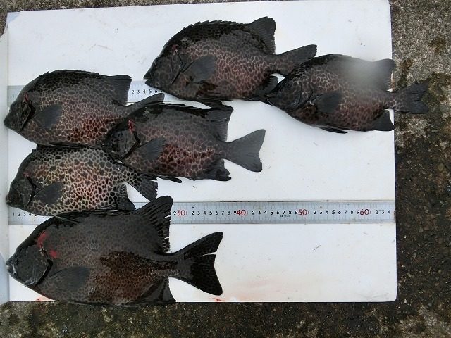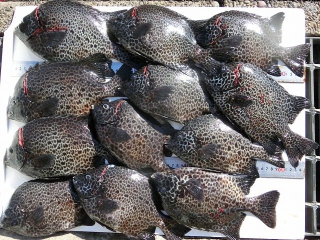 【釣り人】南牟婁郡 阪口記生さん【釣 果】イシガキ 25.5cm~32cm 12匹 【釣り方】底物釣り【水 温】23.0度 【海 上】ナギ 【 潮 】上り・速い -