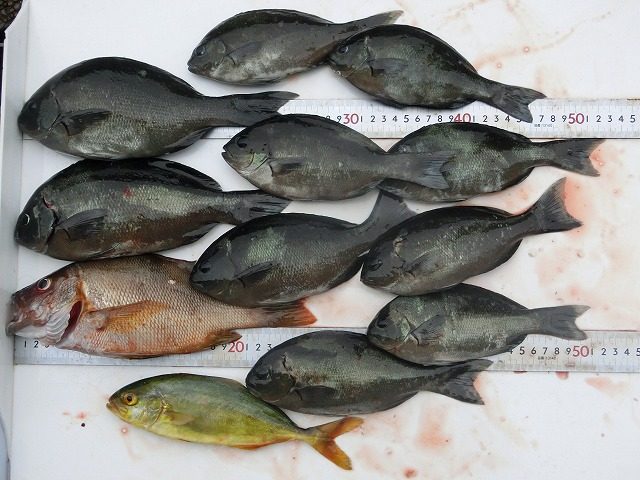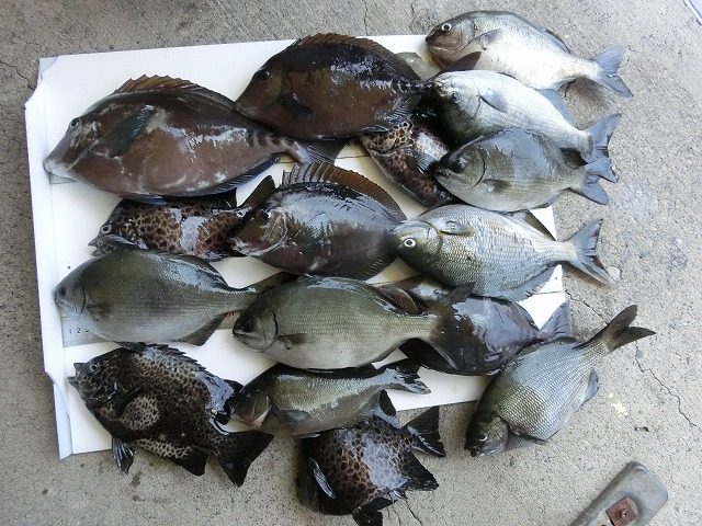 【釣り人】岐阜市 木村正幸さん【釣 果】イシガキ 4匹 サンノジ 4匹 イスズミ 7匹 尾長 1匹【釣り方】ズボ釣り 【水 温】25.0度 【海 上】ナギ 【 潮 】上り・速い -