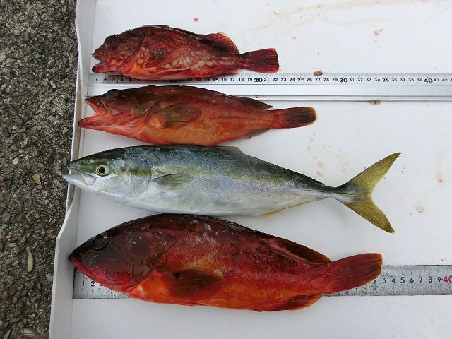【釣り人】和泉市 阪本淳澄さん、【釣 果】アカハタ 27cm~32.2cm 2匹 ツバス 36cm 1匹 ガシ 22cm 1匹 【釣り方】ルアー釣り【水 温】20.5度 【海 上】多少波 【 潮 】上り... -