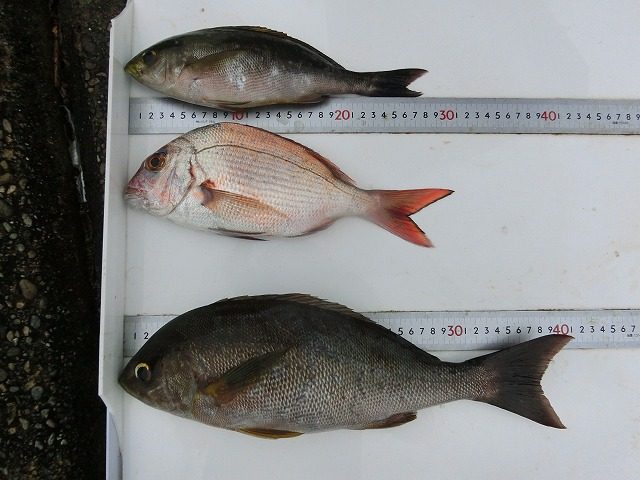 【釣り人】大阪市 吉野 出さん【釣 果】イサキ 28cm~40cm 2匹 真鯛 31cm 1匹 【釣り方】カゴ釣り【水 温】21.7度 【海 上】多少波~高波 【 潮 】下り・速い -