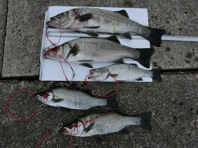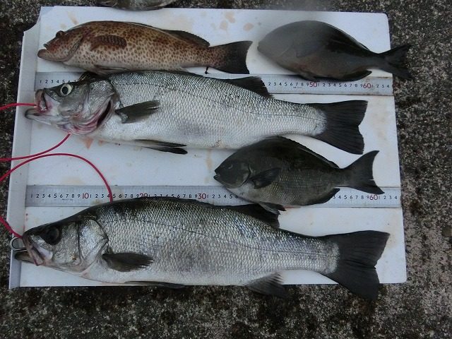 【釣り人】四日市市 樋口さん 半夜釣り 【釣 果】ヒラスズキ 60cm~63.5cm 2匹 オオモンハタ 38cm 1匹 尾長 31cm 2匹 尾長30cm前後を、数釣りましたがリリースしてきました... -