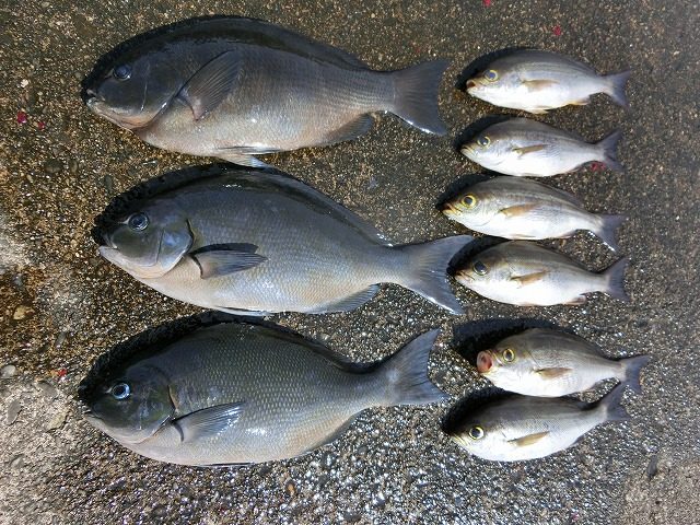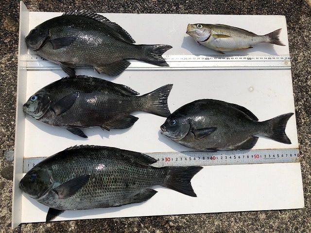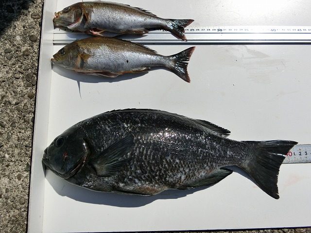 【釣り人】宇陀市 勝山常雄さん 【釣 果】ぐれ 32cm~38cm 2匹 尾長 31cm~32cm 2匹 イサキ 1匹 【釣り方】フカセ釣り 【水 温】17.5度 【海 上】ナギ 【 潮 】下り・遅い -