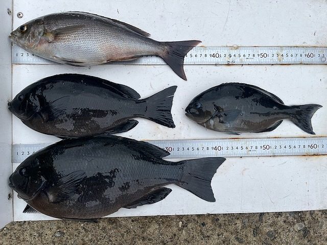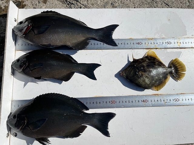 【釣り人】大阪市 脇本耕司さん【釣 果】ぐれ 37cm~38.7cm 2匹 イガミ 39cm 1匹 カワハギ 1匹【釣り方】フカセ釣り【水 温】16.3度 【海 上】ナギ 【 潮 】下り・速い ... -