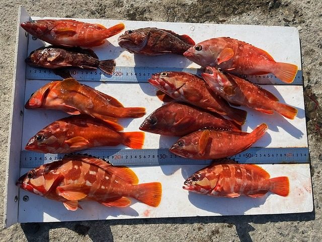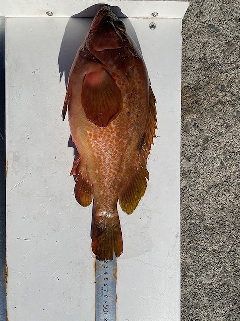 【釣り人】名古屋市 橋本郁弥さん 【釣 果】アカハタ 22cm~30.5cm 10匹 ガシ 2匹 【釣り方】餌釣り 餌・サバの切り身【水 温】21.8度 【海 上】超~ナギ 【 潮 】下り・遅い 【釣... -