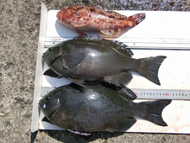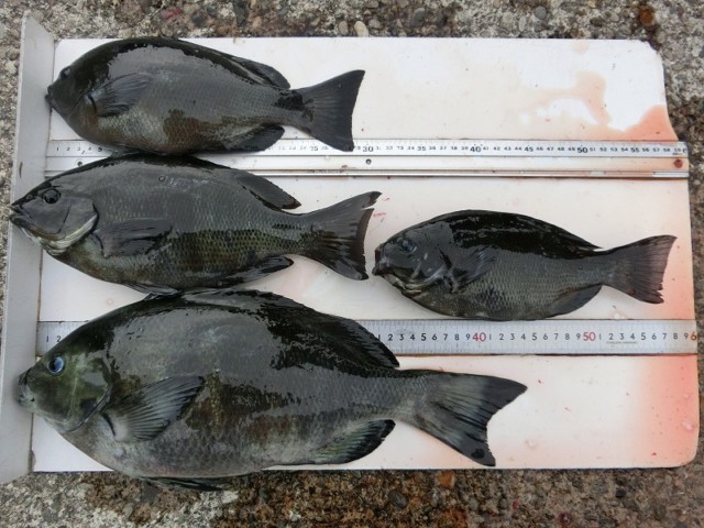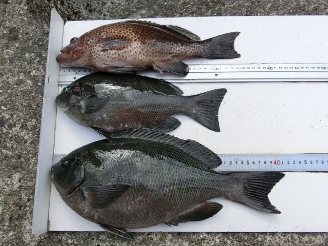 【釣り人】門真市 西宗頼正さん 沖の潮目で、釣れたって言ってました。 【釣 果】ぐれ 26.5cm~44.5cm 4匹 【釣り方】フカセ釣り 【水 温】15.9~16.3度 【海 上】多少波 【 潮 】下り・速い 【釣り人】豊田... -