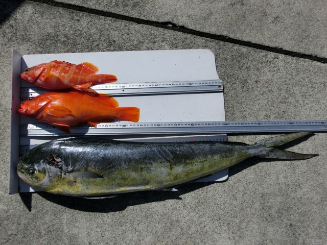 【釣り人】多治見市 長野秀男さん 【釣 果】シイラ 88cm 1匹 アカハタ 28cm~34.5cm 2匹 【釣り方】ルアー釣り 【水 温】21.8度 【海 上】ナギ 【 潮 】下り・遅い 【釣り人】神戸市 高橋保洋さん 【釣 果】尾長 3... -