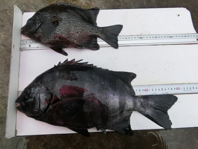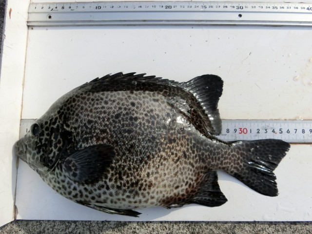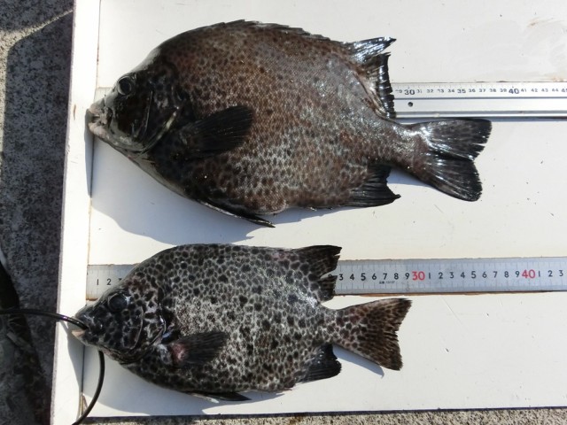 【釣り人】大阪市 門 正章さん 【釣 果】イシガキ 29cm~38cm 3匹 カワハギ 23cm~27cm 10匹 【釣り方】底物釣り・ズボ釣り 【水 温】22.8度 【海 上】高波 【 潮 】下り・速い -