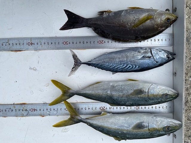 【釣り人】大阪市 古川弘章さん 【釣 果】ツバス 34cm~35.5cm 2匹 ヤイト 30cm 1匹 イサキ 32cm 1匹【釣り方】フカセ釣り 【水 温】度 【海 上】多少波 【 潮 】下り・速い ... -