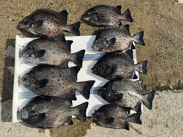 【釣り人】富田林市 赤松茂美さん【釣 果】イシガキ 30cm~36cm 2匹 【釣り方】底物釣り 【水 温】25.6度 【海 上】高波・ウネリ大 【 潮 】下り・速い -