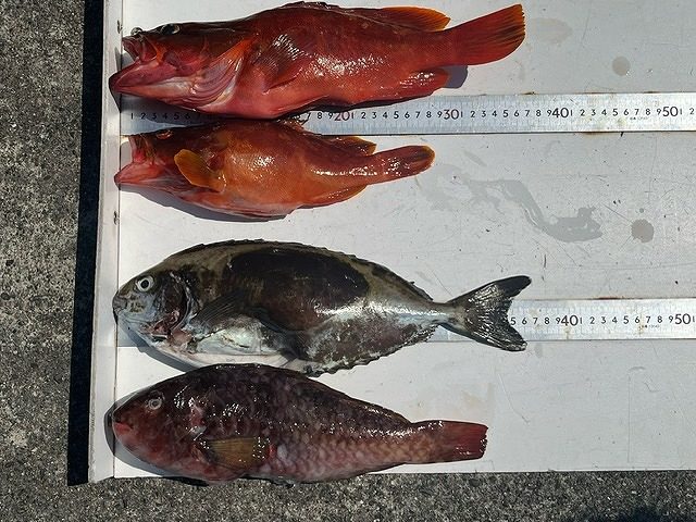 【釣り人】八尾市 宮田明典さん 【釣 果】アカハタ 28.5cm~37cm 2匹 イガミ 33cm 1匹 アイゴ 36.5cm 1匹 【釣り方】フカセ釣り【水 温】25.5度 【海 上】ナギ 【 潮 】上り・速い ... -